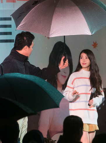 조그맣고 귀여운 아이유와 크고 거대하지만 듬직한 경호원이네요.